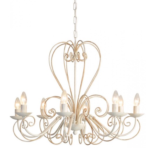 Lustra Senna - Fier. Culoare: alb fildes/auriu antic. Ø: 78 cm. H: 60 cm. 8 x E 14/60 W. Pret: 829 lei.