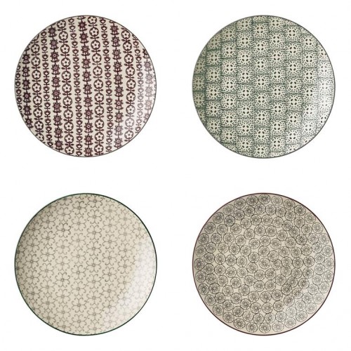 Set 4 farfurii Karine - Gri/Gri Inchis/Verde/Violet, diametru 20 cm. Ceramica. Pret: 204,82 lei.