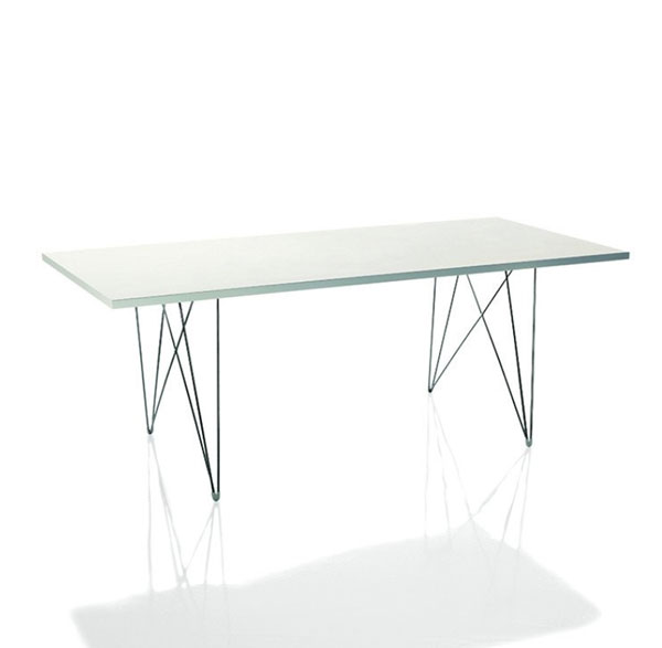 XZ3 masa rectangulara 200 x 90 cm. Masa XZ3 are blatul din MDF lacuit alb ori negru si baza din tuburi de otel ce pot fi cromate ori vopsite in epoxidic in alb sau negru.