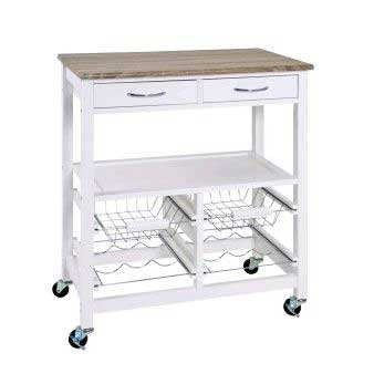 Carucior pentru servire Susi - Carucior bucatarie. Blat MDF stejar deschis. Cadru lemn masiv alb lacuit, contine 2 sertare. Dimensiuni: 68x37x84 cm. Pret: 499 lei.