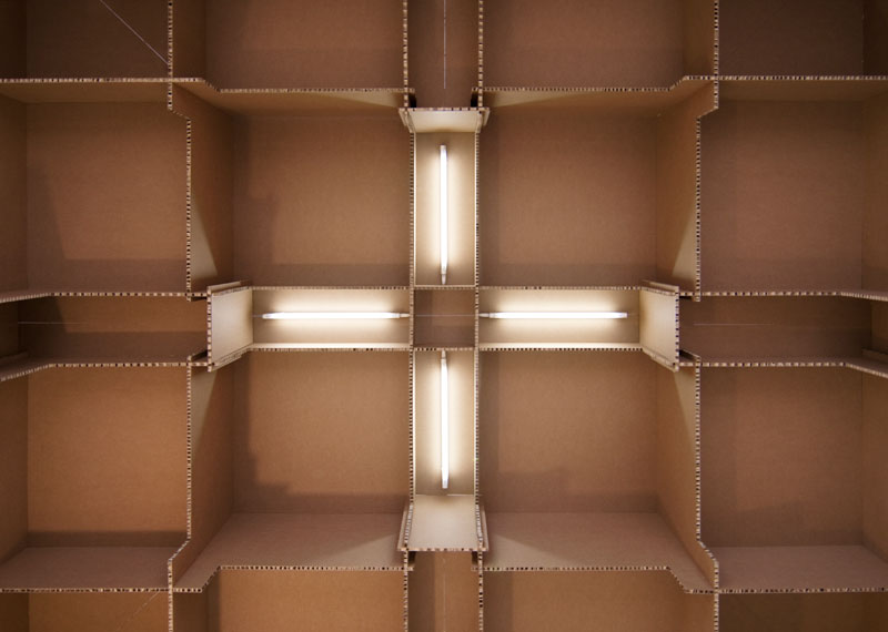 Utilizand peste 500 de metri patrati de carton taiat, au rezultat peste 1500 de piese ce s-au imbinat intre ele fara sa fie nevoie de suruburi sau lipici.