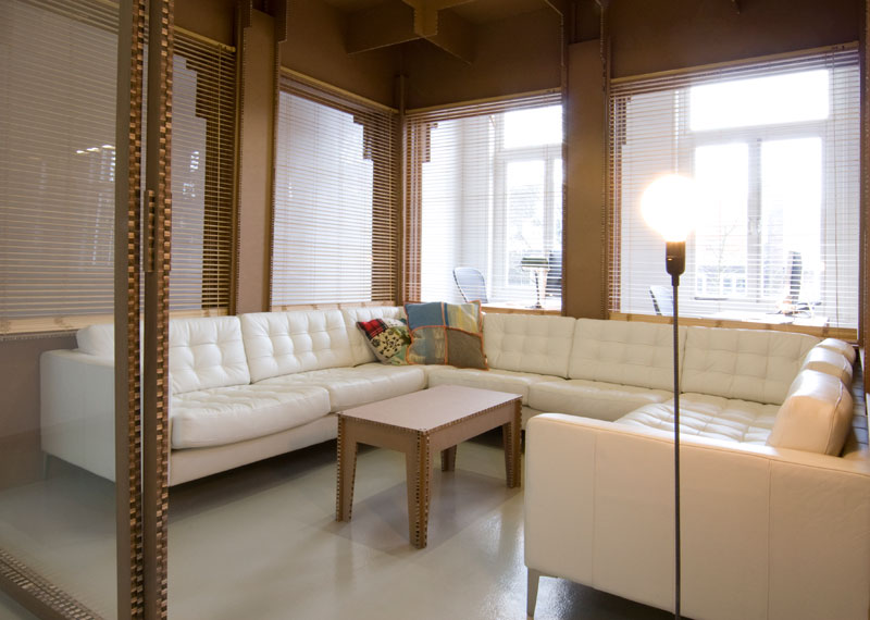 Imaginile ce urmeaza sa le parcurgeti prezinta interiorul unui birou realizat in totalitate din carton. Conceptul inedit ii apartine designerului olandez Joost van Bleiswijk.