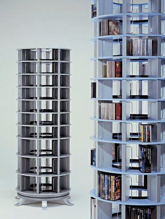 Revolving Tower - Suport decorative pentru CD-uri sau DVD-uri. Capacitate: 728CD+216DVD sau 1144 CD-uri sau 567DVD-uri. Dimensiuni: diam.72/84 x 195 cm