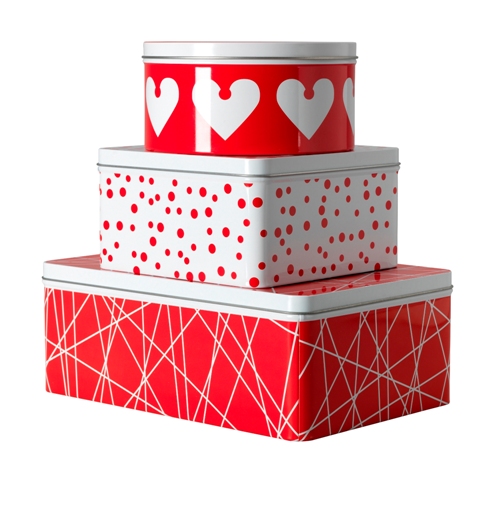 TRIPP - set cutii de metal cu capac, 27x18x10 cm, roşu/alb, 3 bucati.