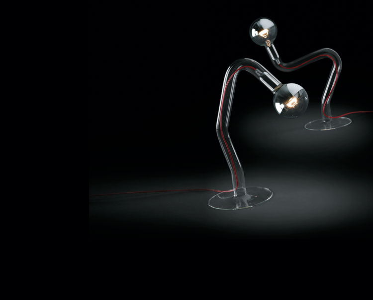 Lampa pentru birou Filipo, cu design exclusivist, realizata manual din sticla borosilicat suflata. Design: Alfonso Fontal. Cablu de alimentare imbracat in material textil rosu.1 bec incandescent - 60 W. Dimensiuni: H 45 cm. Pret la cerere