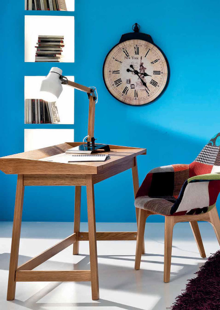 Lampa pentru birou Peo. Baza metalica, finisaj cromat. Picior realizat din lemn. Abajur metalic, finisaj alb mat. 1 bec - max 60 W. Dimensiuni: H 70 cm. Pret 164 euro + TVA