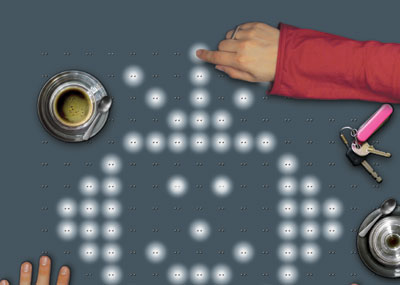 Exemplul in imagini are la baza principiul « campului de joaca » a meselor unui café-bar. Abilitatea jocului este nativa, instinctuala, sarind peste etapa autopermisibilitatii, peste cenzura comunicarii. Aceasta metoda ofera noi optiuni de expresie personala si comunicare si odata cu ele, o solutie incomparabil de eficienta intr-un mediu office.(nu se exclud adaptari).